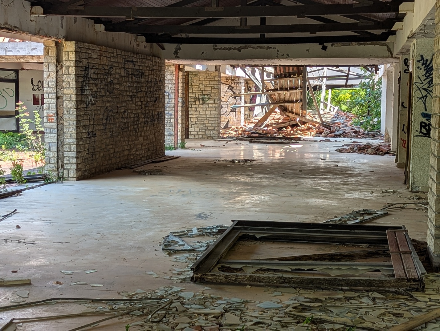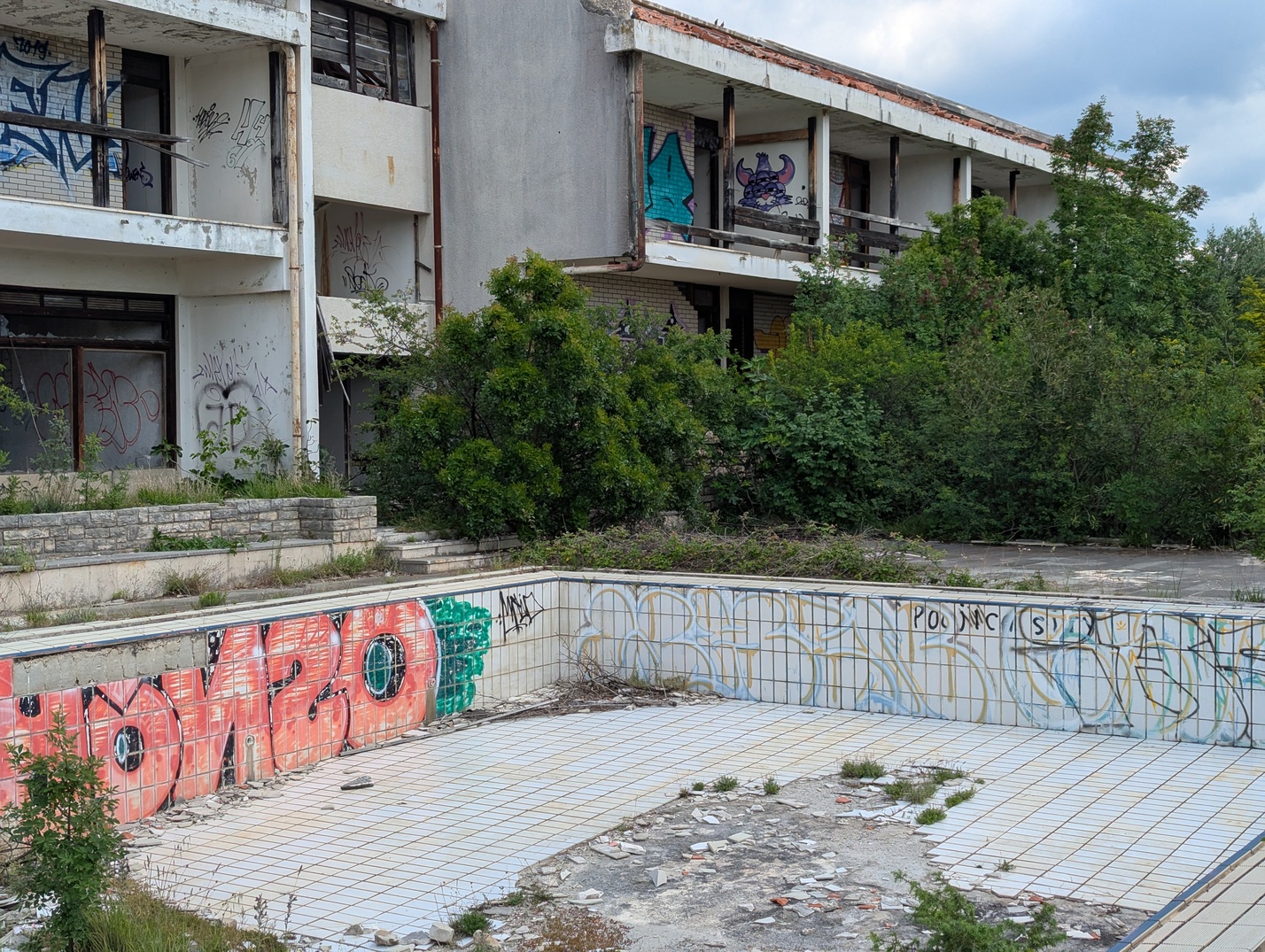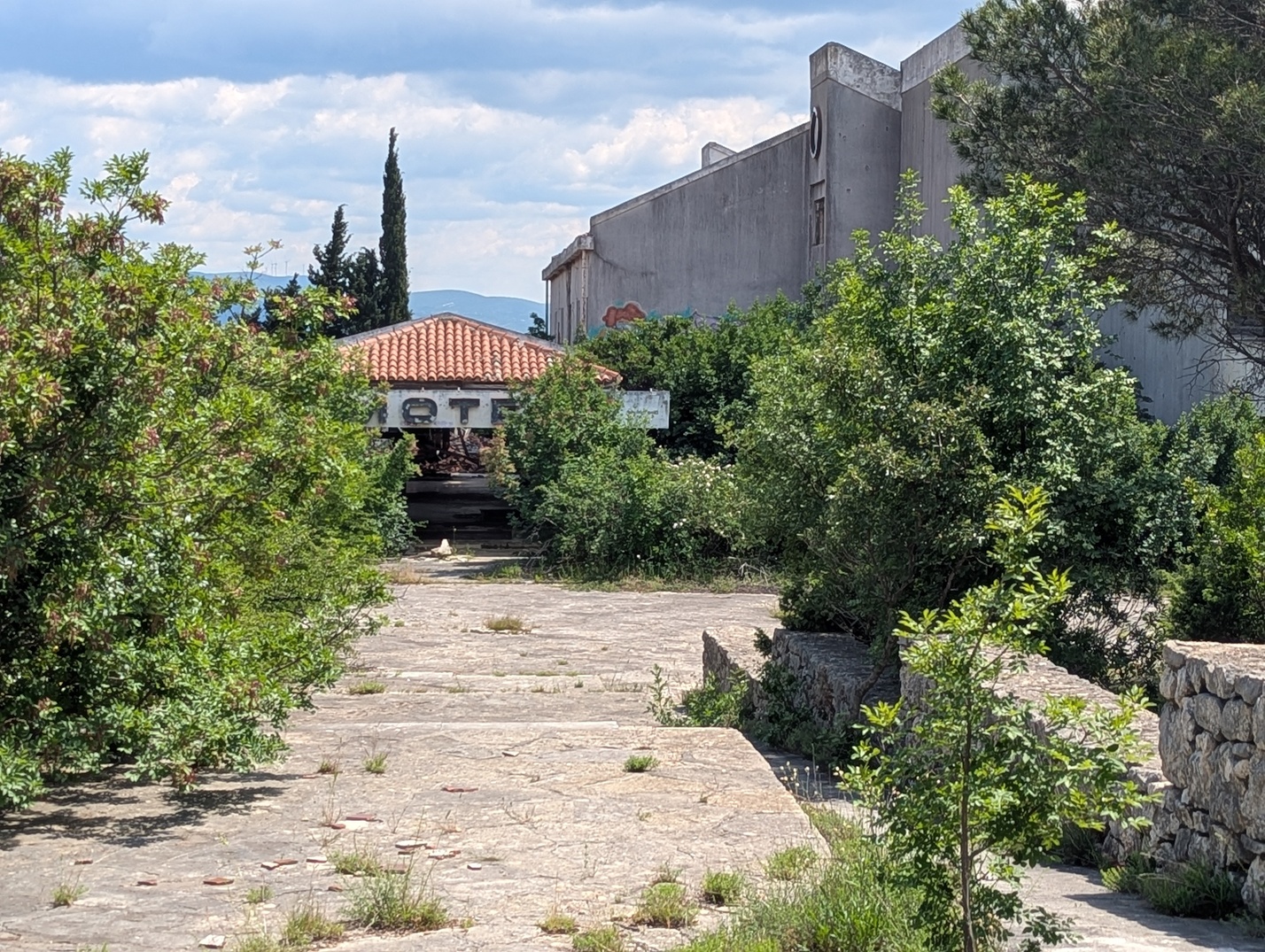 Au nord de Zadar, près d’une autoroute, mais bien dissimulé derrière une petite colline, se dresse un grand motel abandonné, voué à la ruine, au fond d’un vaste parking. Envahi par les mauvaises herbes et jonché de déchets industriels illégaux, ce lieu est idéal pour l’exploration urbaine en Croatie. L’imagination s’empare du site et se projette dans le passé, à une époque où l’endroit était fréquenté et devait être accueillant. Le visiteur doit suivre le même chemin depuis le parking jusqu’à un bâtiment qui se dévoile peu à peu dans toute sa décrépitude, évoquant le passage incessant des voyageurs et les échos silencieux de séjours, de voyages et de bons moments oubliés.