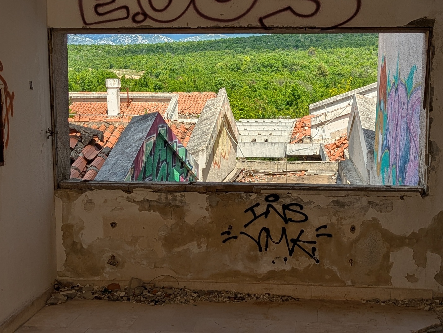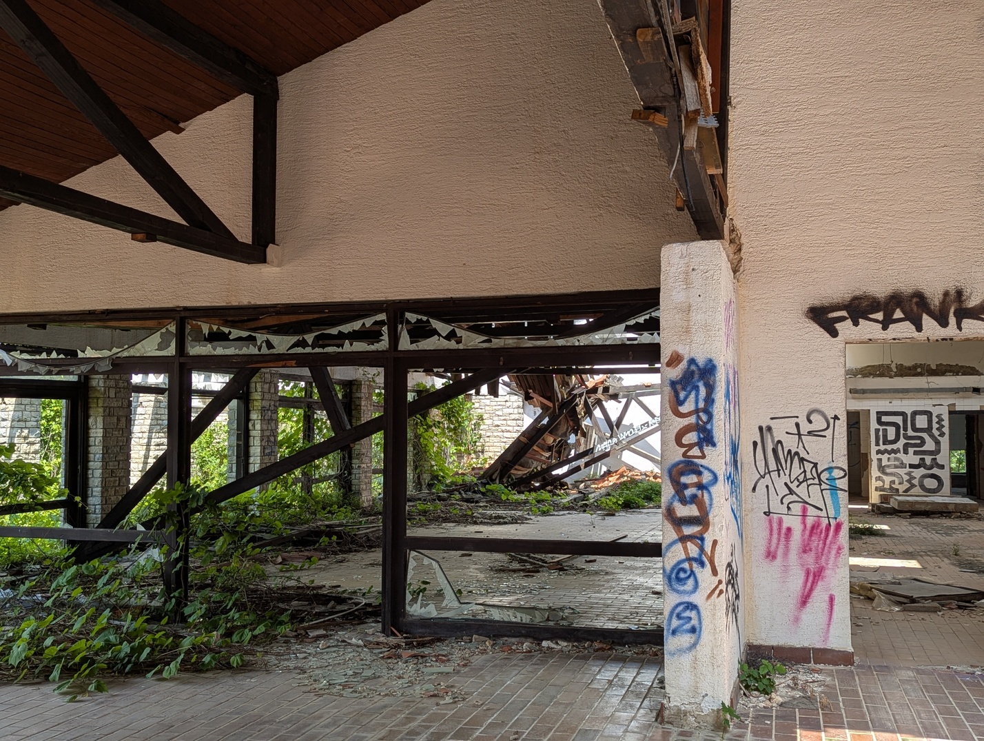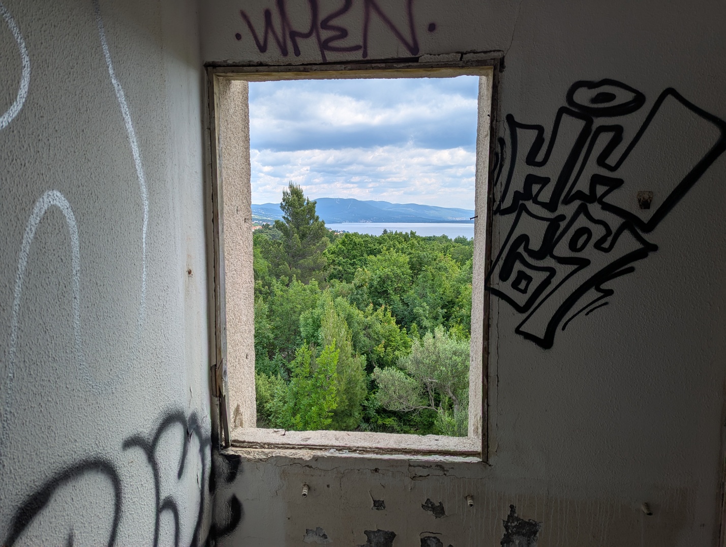 Au nord de Zadar, près d’une autoroute, mais bien dissimulé derrière une petite colline, se dresse un grand motel abandonné, voué à la ruine, au fond d’un vaste parking. Envahi par les mauvaises herbes et jonché de déchets industriels illégaux, ce lieu est idéal pour l’exploration urbaine en Croatie. L’imagination s’empare du site et se projette dans le passé, à une époque où l’endroit était fréquenté et devait être accueillant. Le visiteur doit suivre le même chemin depuis le parking jusqu’à un bâtiment qui se dévoile peu à peu dans toute sa décrépitude, évoquant le passage incessant des voyageurs et les échos silencieux de séjours, de voyages et de bons moments oubliés.
