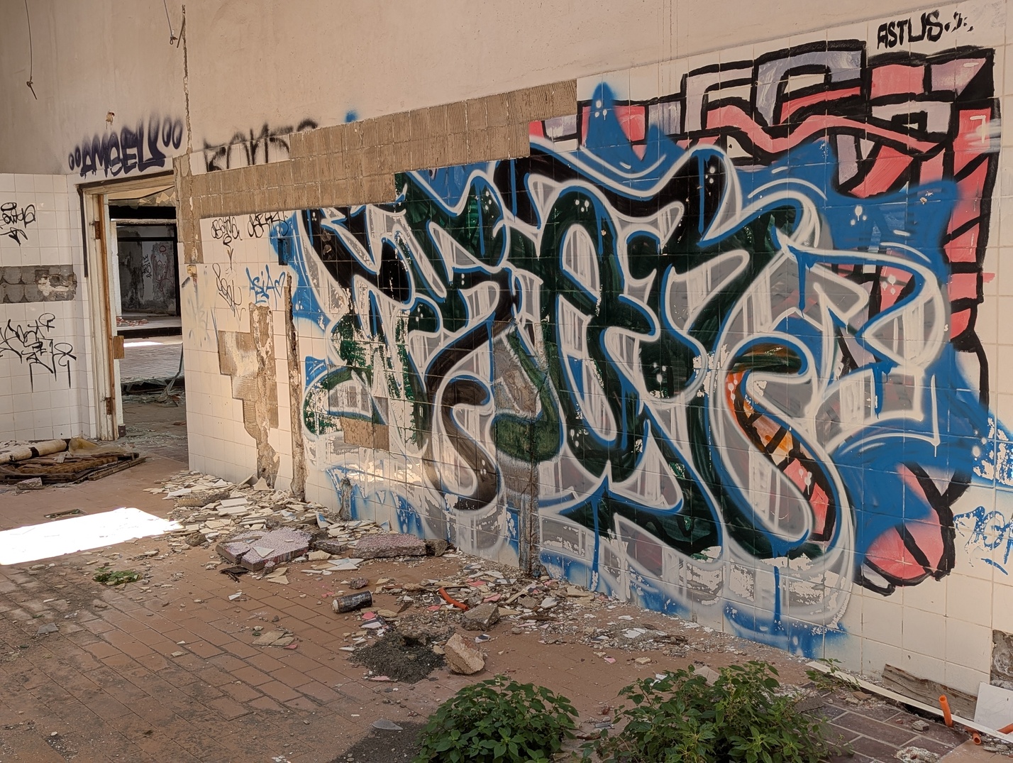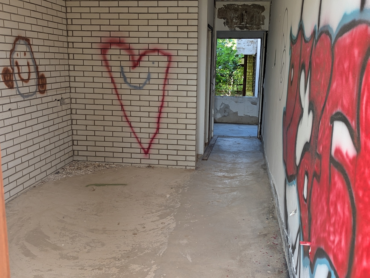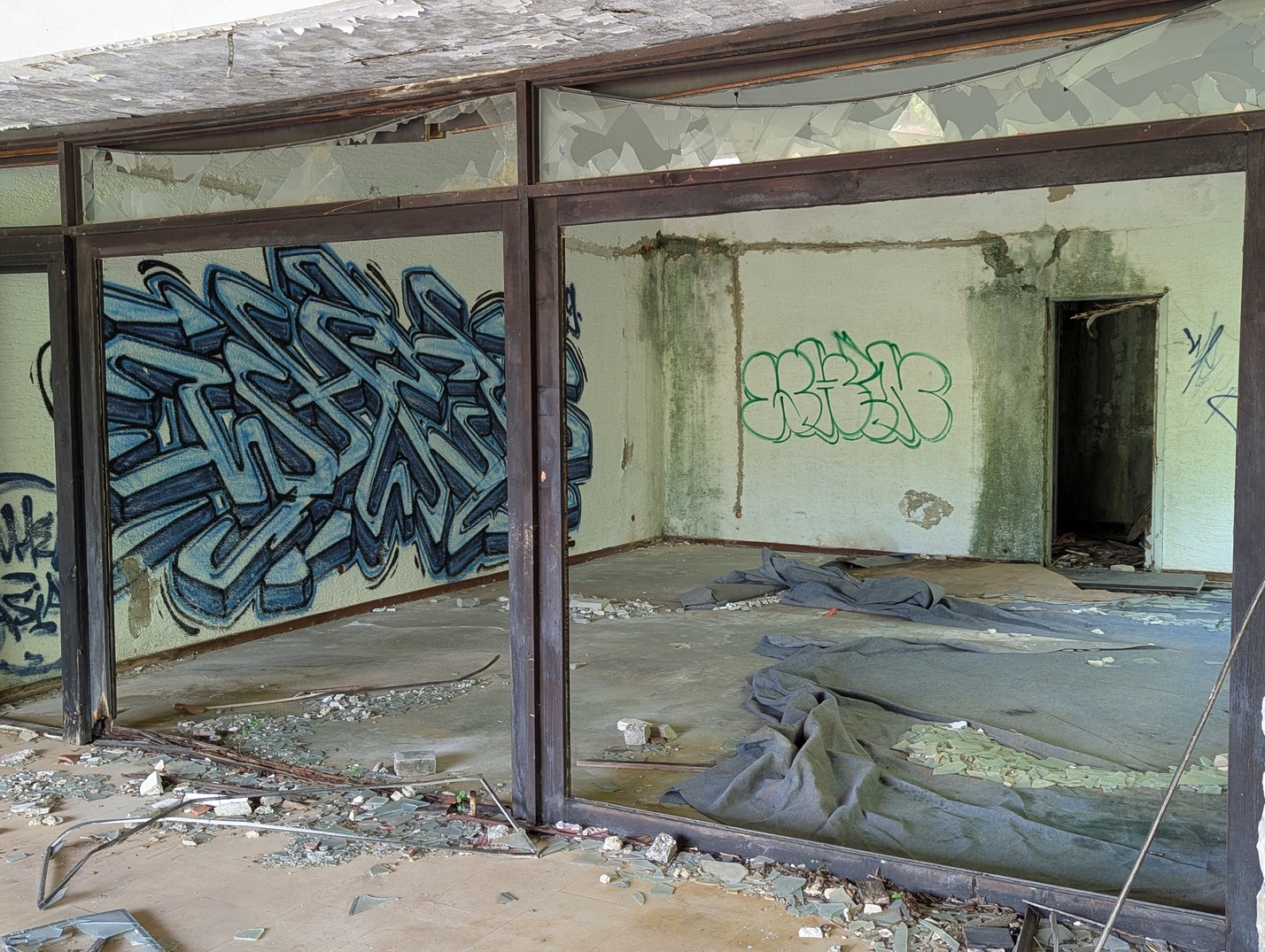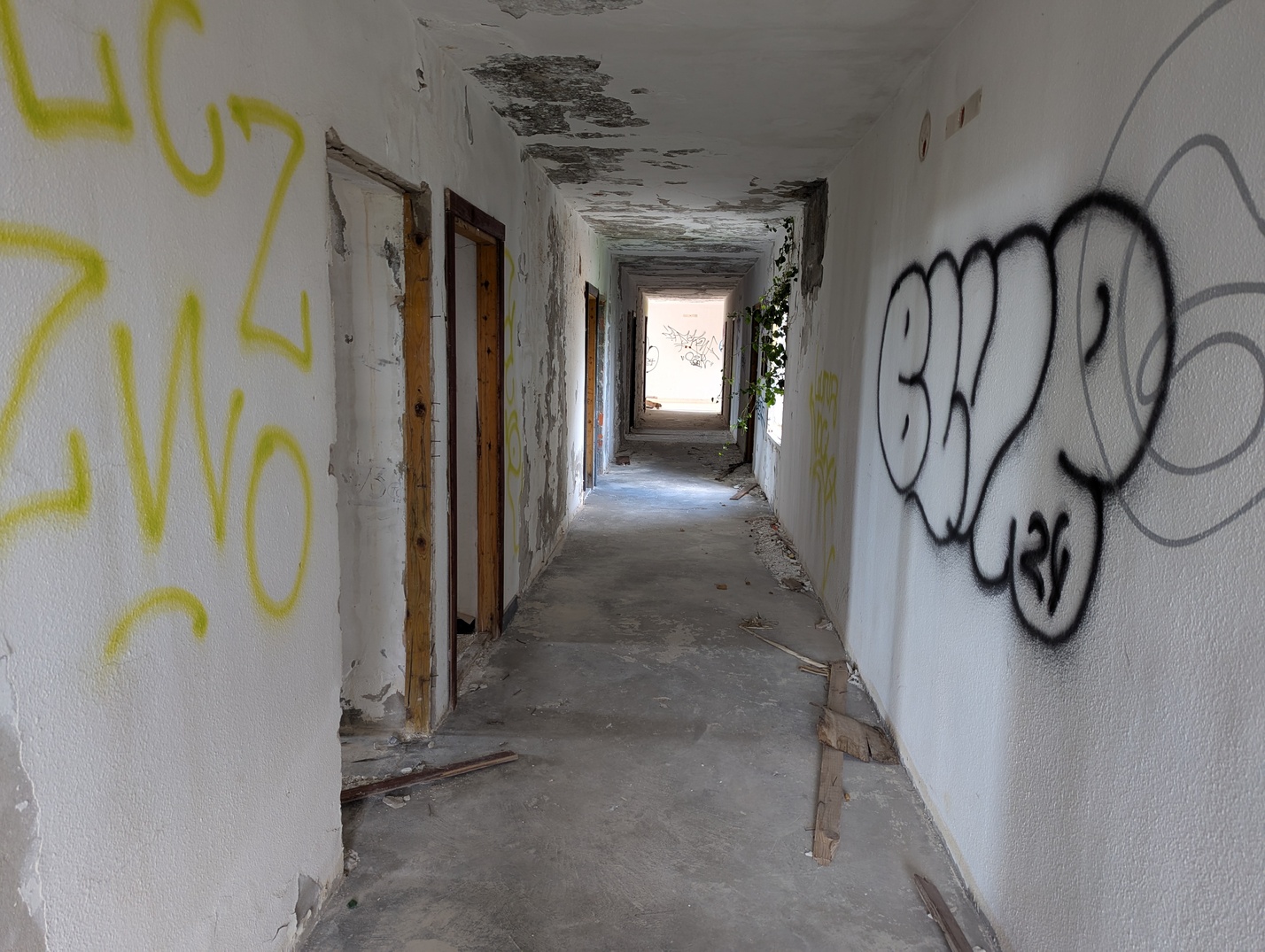 Les nombreux graffitis ne sont pas tous hideux… Ils témoignent du passage d’un lieu devenu fantôme, refuge d’animaux discrets, de fêtes improbables et de visites curieuses d’un passé oublié et disparu, qui s’enfonce dans les sables du temps.