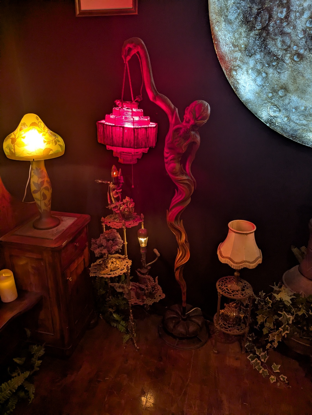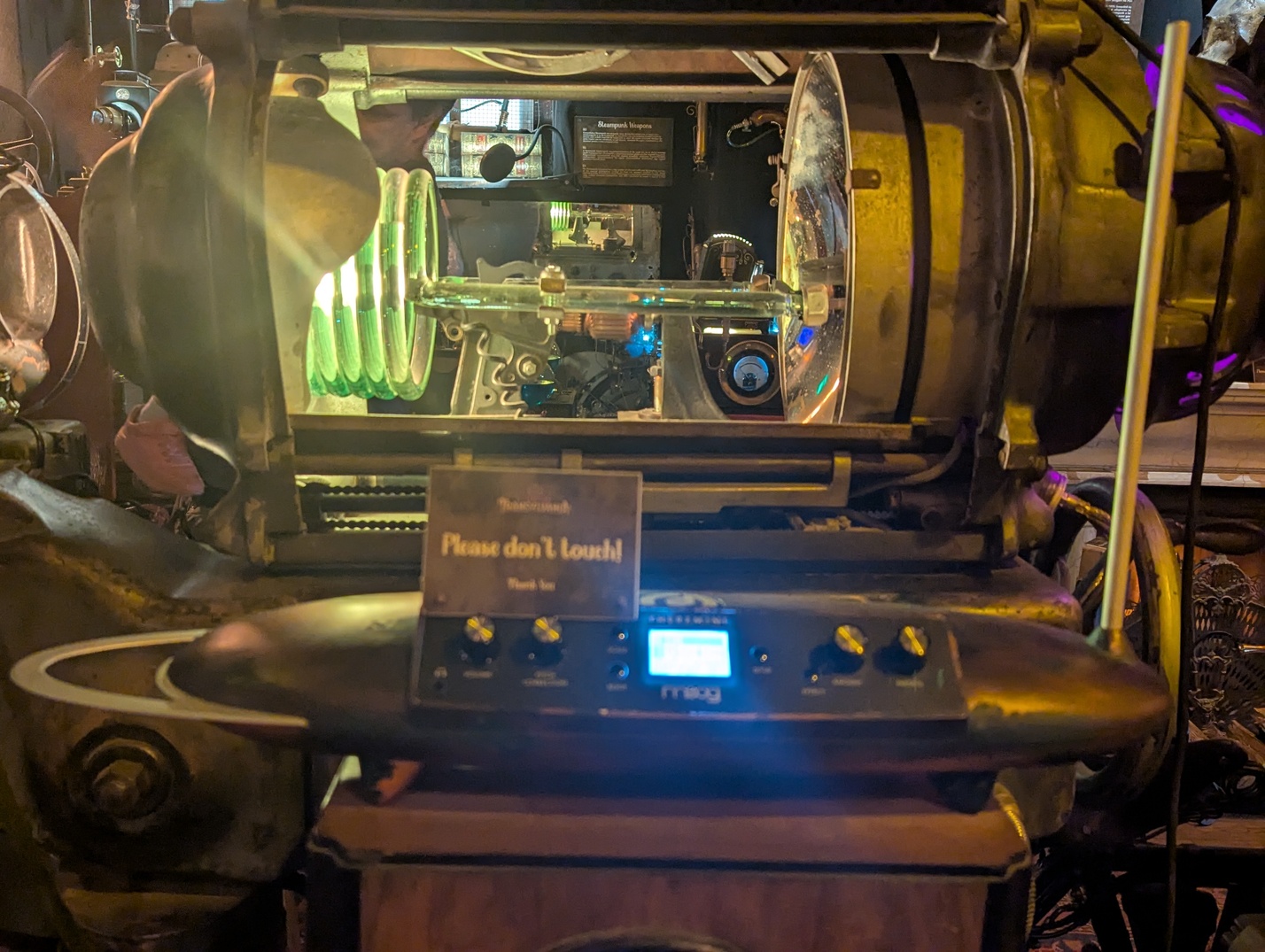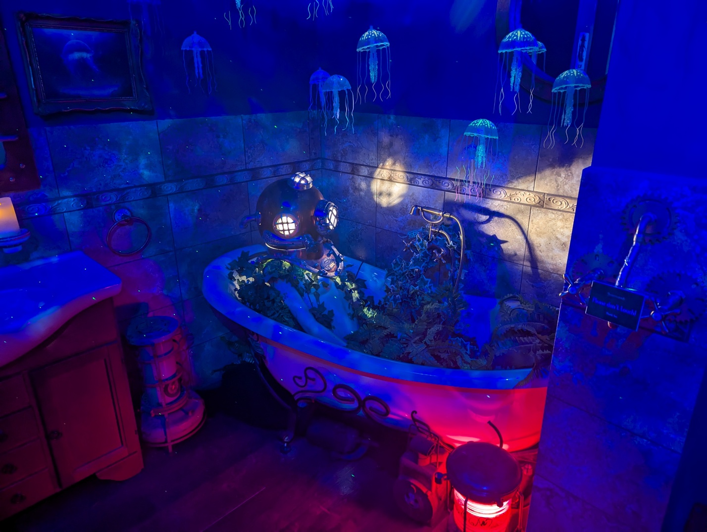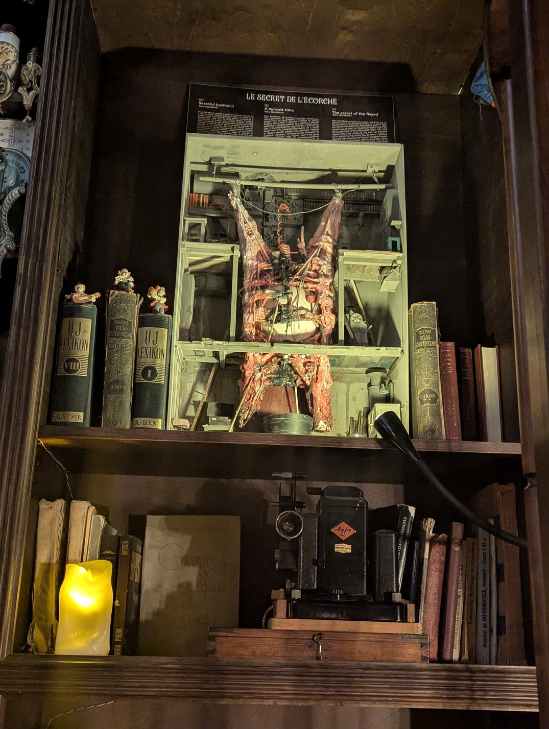 Cages, guitares, consoles de jeux vidéo, vélos, baignoires, tuyaux en tous genres, lampes… La diversité des sources stimule l’imagination avec ces inventions surprenantes et ces assemblages foisonnants, tous détournés de leur apparence ordinaire. Le savoir, l’érudition et la gentillesse des guides, dotés d’un humour certain, accompagnent une visite déroutante qui inclut même un voyage dans le temps, installé dans un siège dissimulé derrière une bibliothèque très bien fournie.