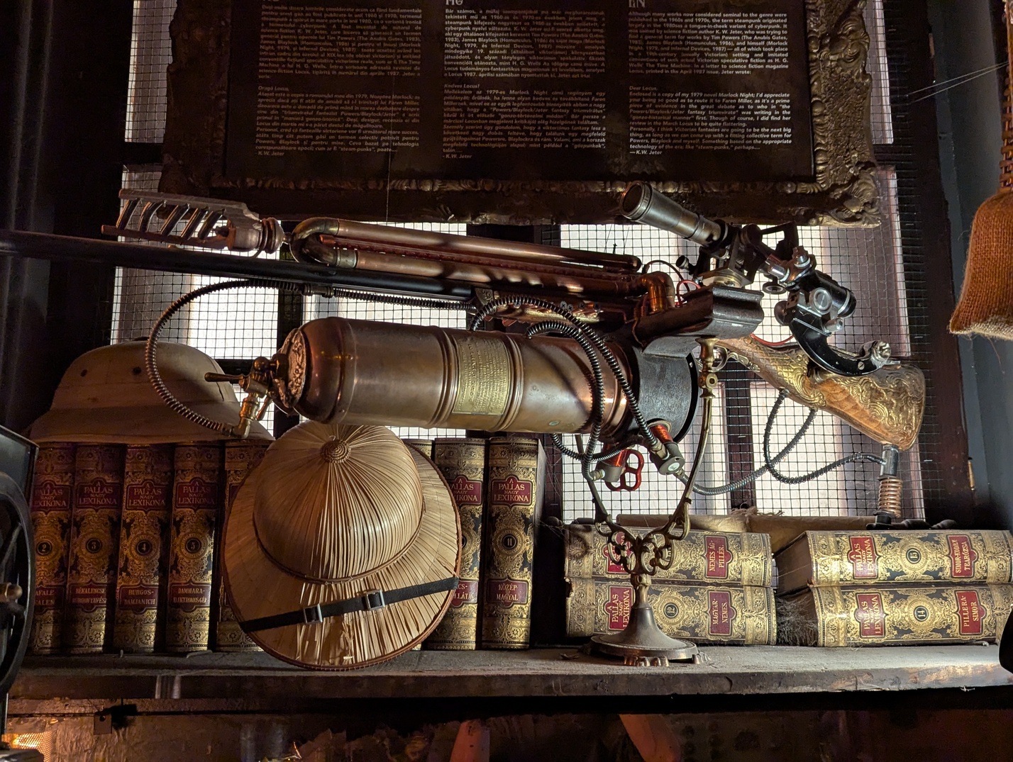 Le Musée Steampunk de Cluj Napoca justifie à lui seul le voyage dans la ville. Sur deux étages, une grande variété d’objets, d’assemblages et de constructions remarquables sont exposés, témoignant d’une inventivité et d’un savoir-faire extraordinaires. Des objets du quotidien ont été détournés de manière improbable, enrichis de façon inattendue et transformés en expressions imaginatives qui nous transportent dans une réalité alternative digne de la science-fiction, de Jules Verne à Tim Powers, en passant par de grands créateurs japonais comme Hayao Miyazaki.